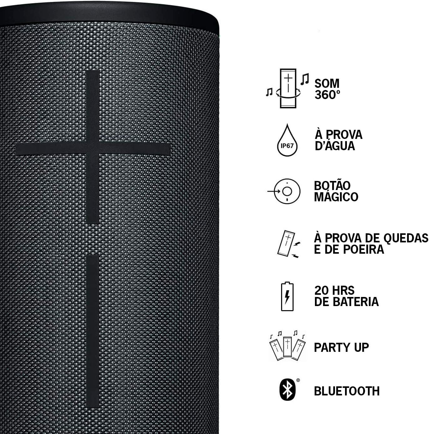 | Ultimate Ears MEGABOOM 3 | Sim | IP67 | 20h | 835g | R$ 1.499 |