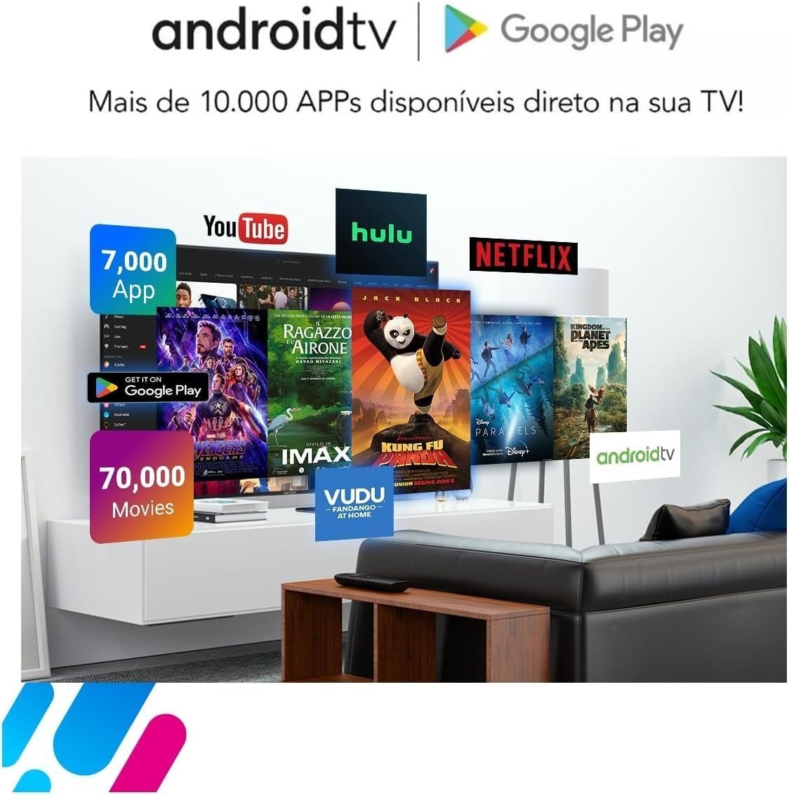 - Android TV: Tenha acesso a uma vasta gama de aplicativos, filmes, séries e jogos diretamente na tela grande.