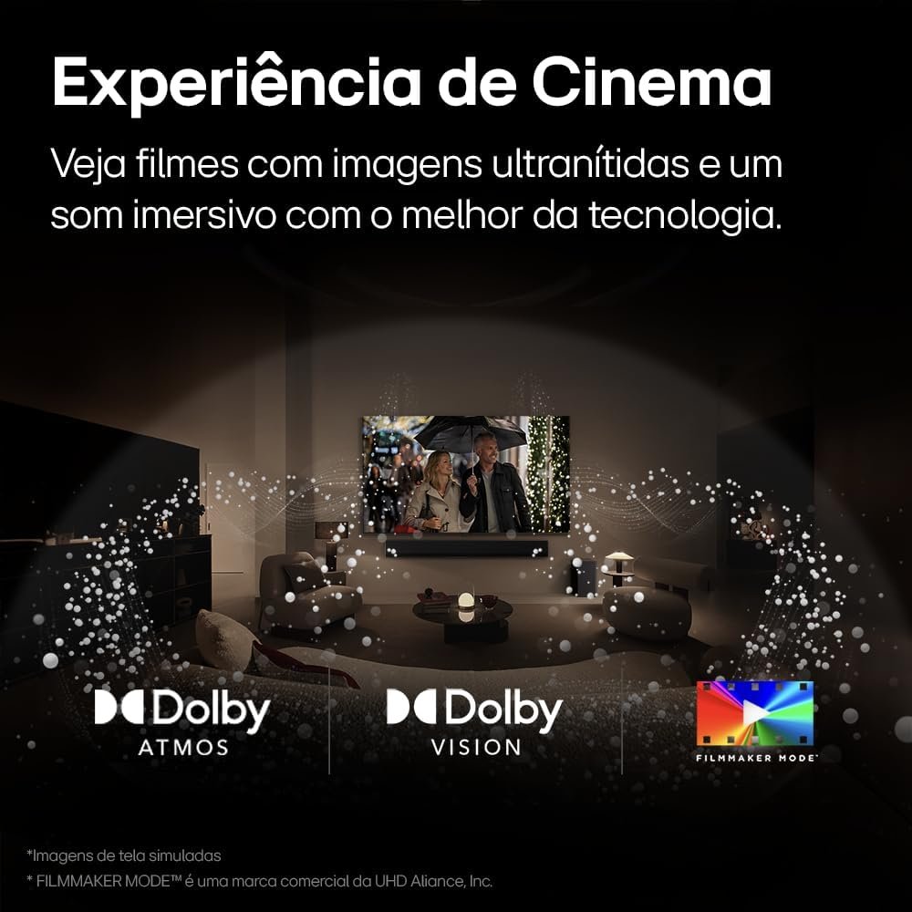 - Dolby Atmos: Proporciona som tridimensional que faz você sentir que está no centro da ação.