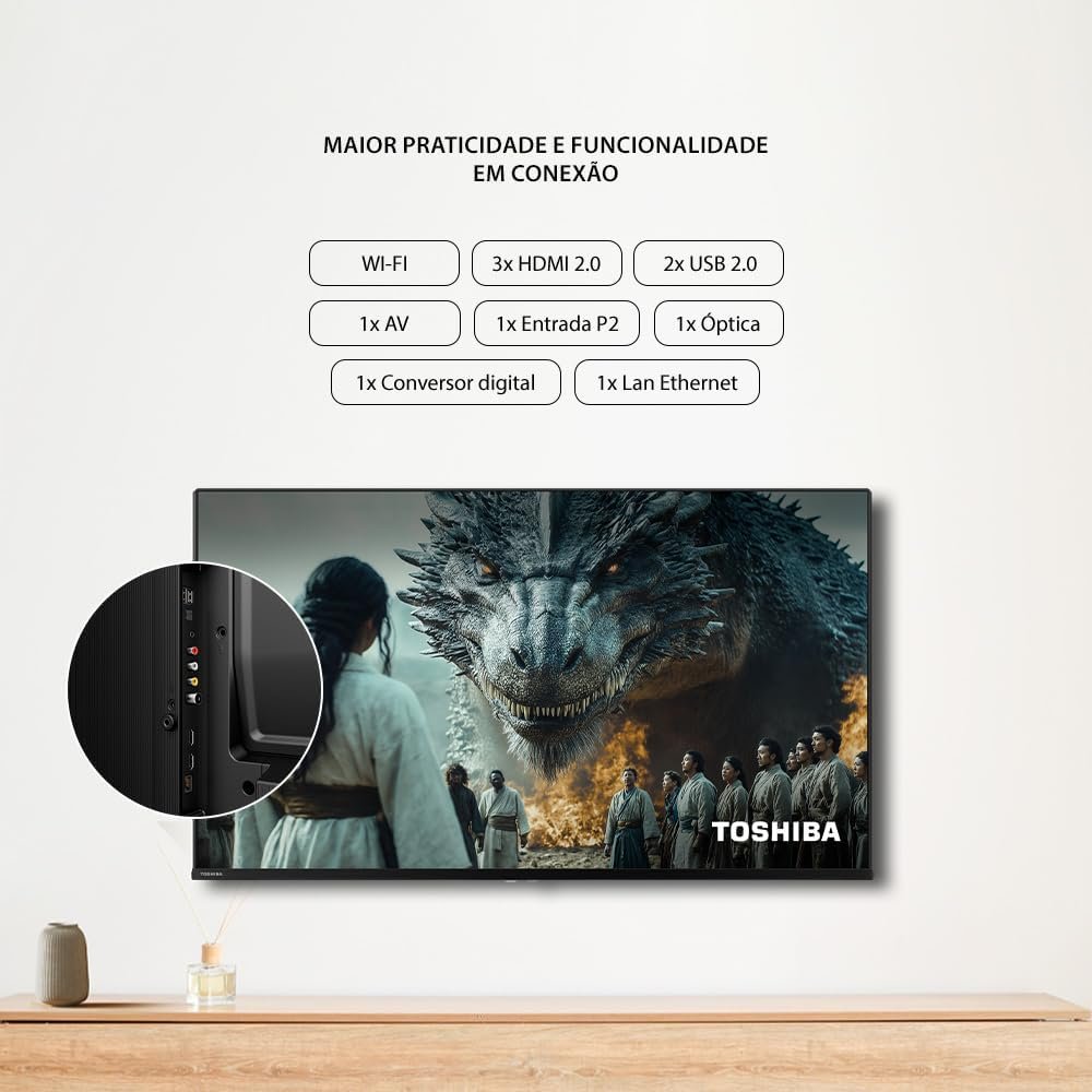 A qualidade de áudio é uma parte essencial da experiência de visualização, e a Smart TV Toshiba não decepciona. Com tecnologia Dolby Audio e Dolby Vision Atmos, você obterá um som imersivo, mesmo com os alto-falantes de 16W RMS.