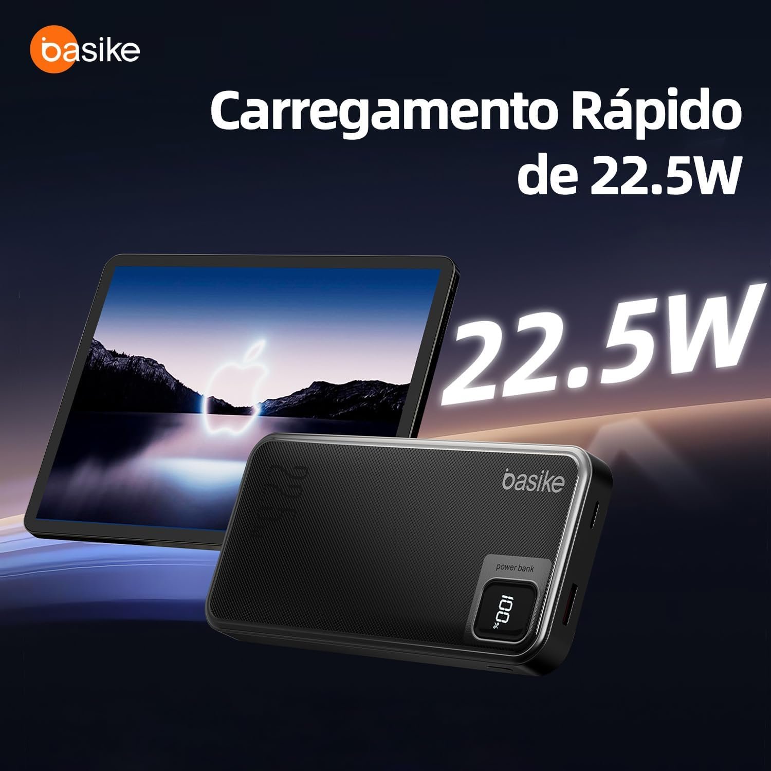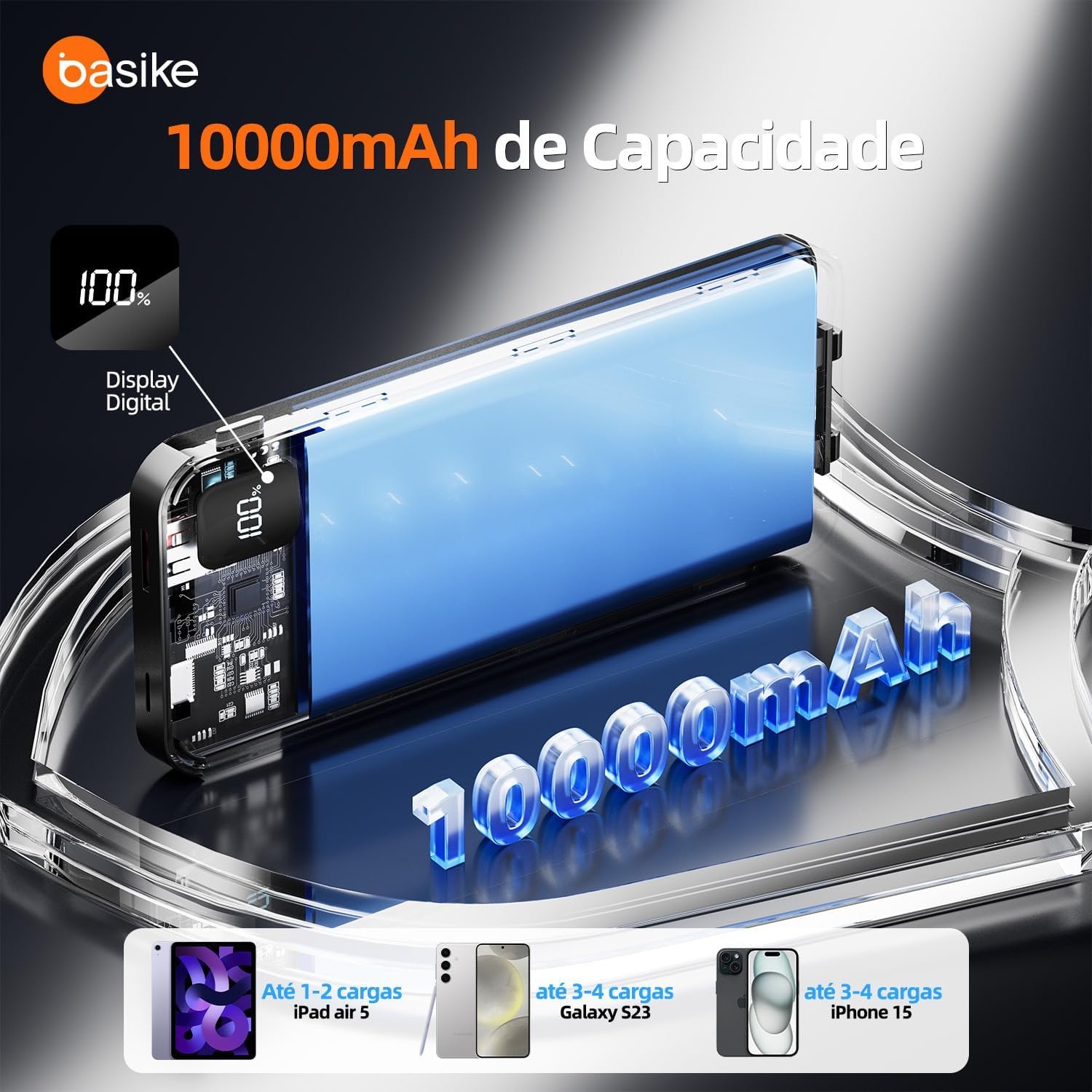 Com uma capacidade de 10000mAh, este power bank é capaz de carregar vários dispositivos, desde smartphones a tablets, com uma velocidade impressionante. A tecnologia de carregamento rápido de 22.5W garante que você não fique esperando horas para que seus dispositivos fiquem prontos para uso.