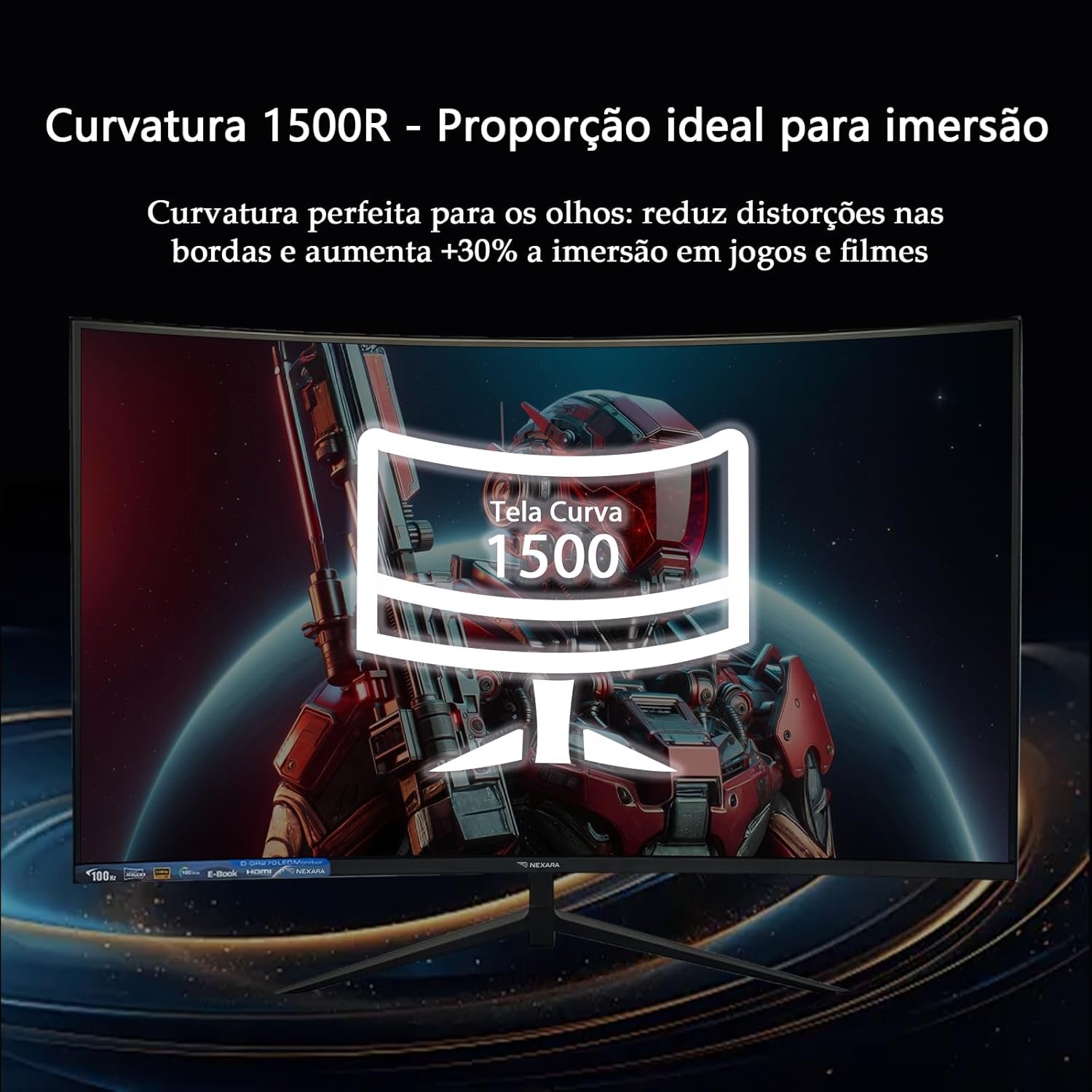 Ao falar sobre monitores curvos, é impossível não mencionar a curvatura 1500R, que foi projetada para oferecer uma experiência de visualização imersiva. Vamos ver como essa característica se destaca: