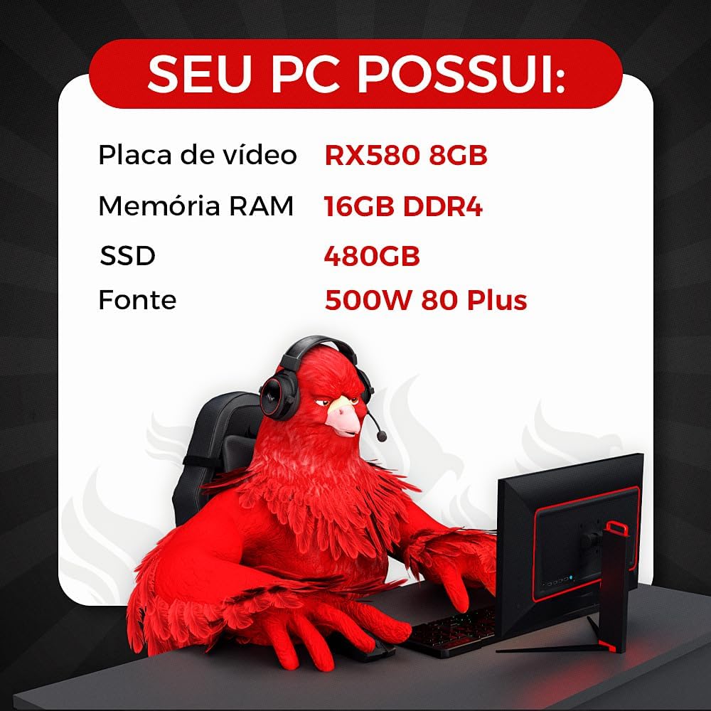 | Placa de Vídeo | Radeon RX 580 de 8GB |