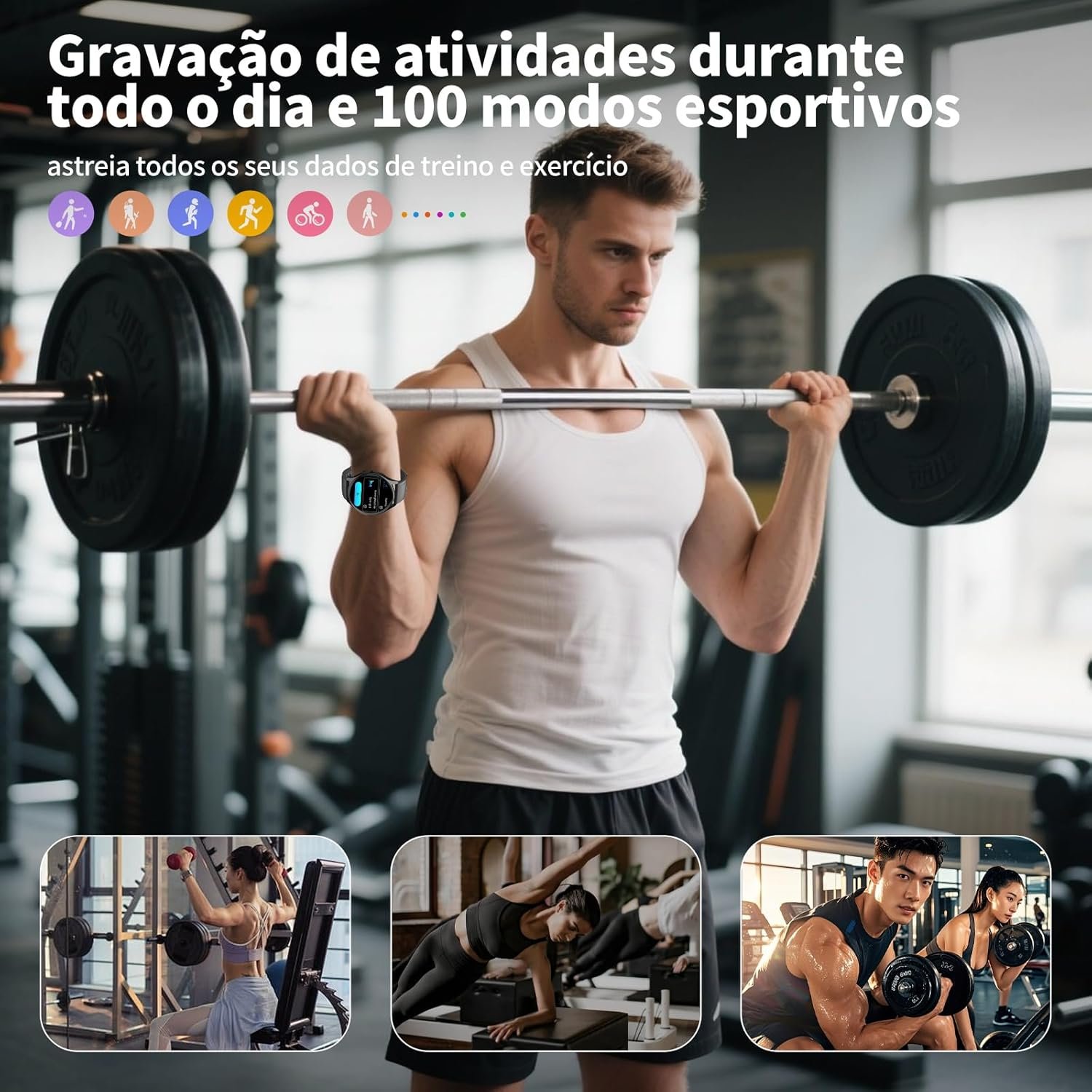 - Incluindo caminhada, corrida, ciclismo, salto, basquete e muito mais.