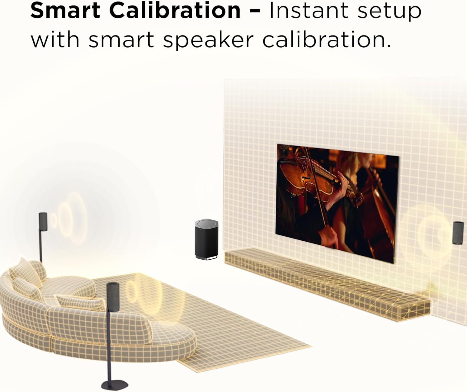 - Instalação Simplificada: Coloque-o em qualquer lugar e conecte-o à energia. O sistema ajusta automaticamente o som, eliminando a necessidade de configurações complexas.