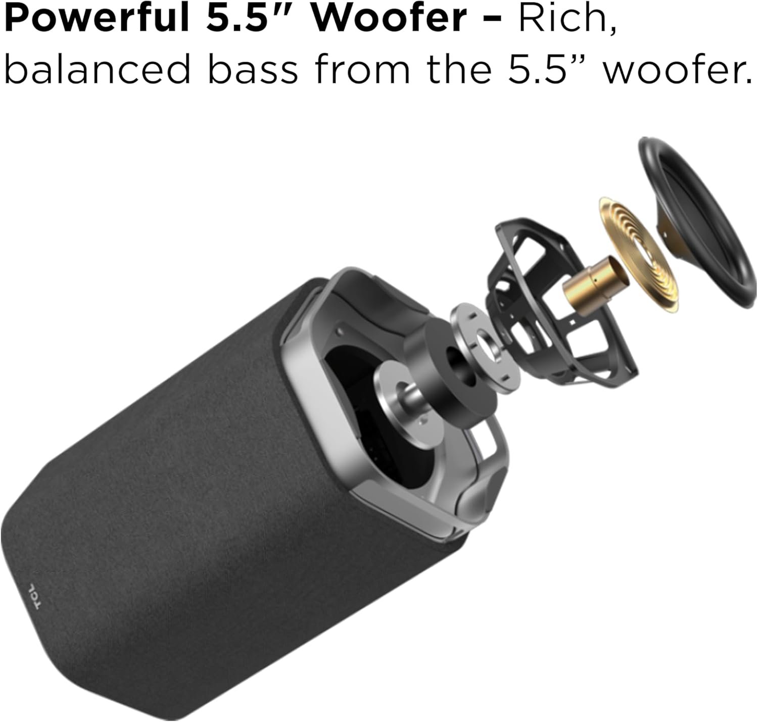 - Woofer Potente de 5,2 Polegadas: O woofer proporciona uma sonoridade equilibrada, que realça cada batida musical, melhorando a experiência auditiva.