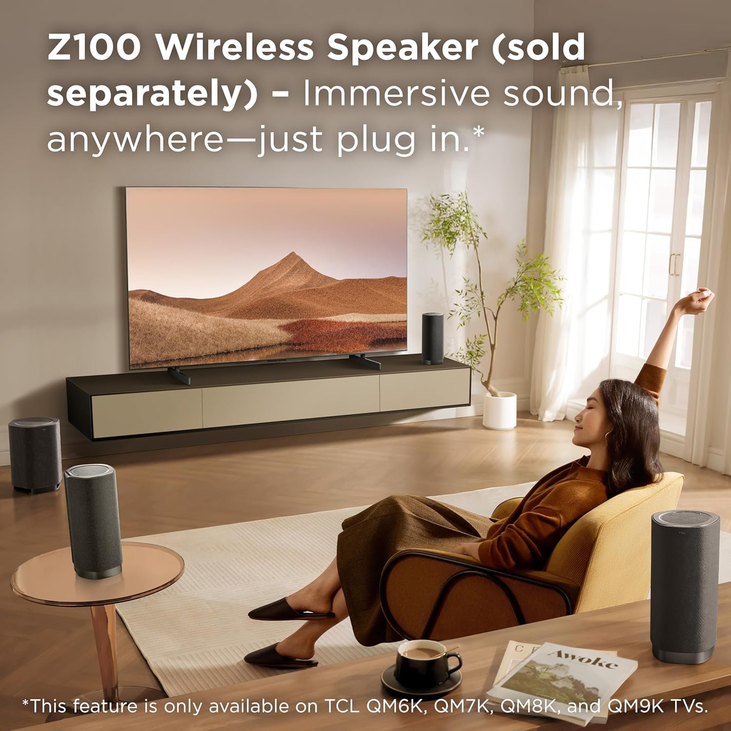 - Experiência Imersiva: Com o Dolby Atmos Flex Connect, o subwoofer integra-se de forma harmônica ao alto-falante sem fio Z100 e TVs TCL selecionadas.