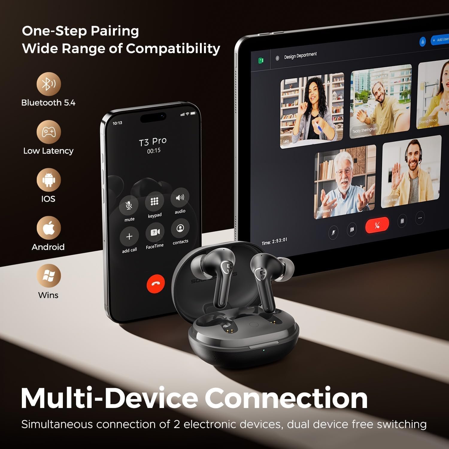 - Conexão Simplificada: Sem mais complicações ao alternar entre seu telefone, tablet e laptop.
