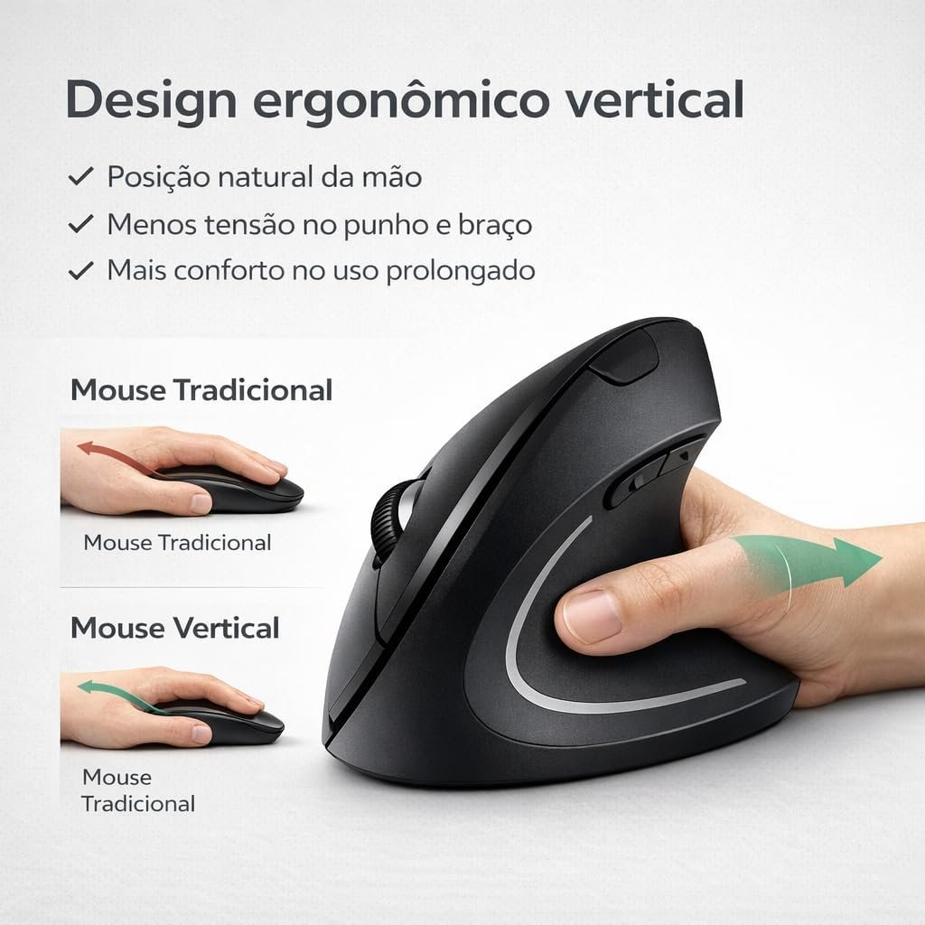 Mouse Vertical Ergonômico Sem Fio: Conforto e Funcionalidade nas Suas Mãos