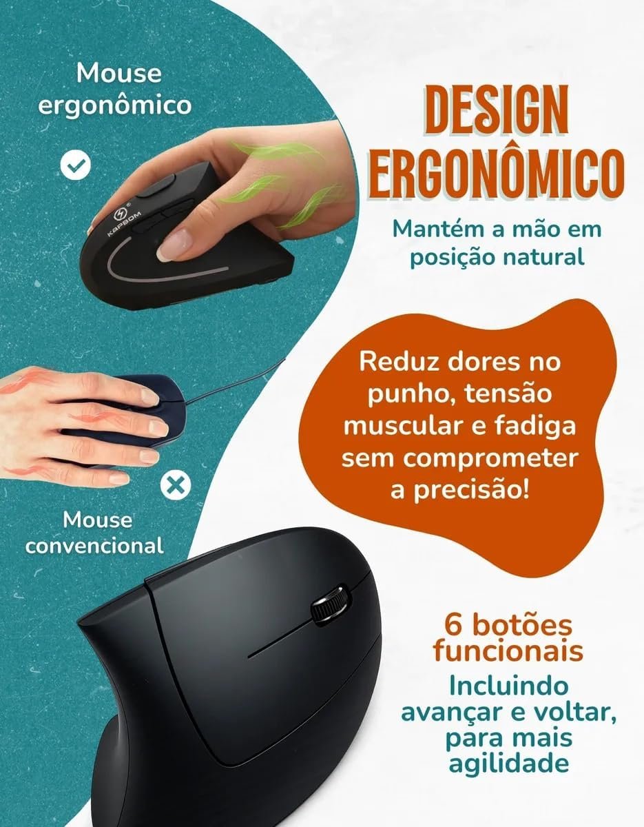 O mouse vertical ergonômico se destaca por várias características inovadoras que o tornam um produto indispensável para quem valoriza o conforto e a eficiência. Vamos analisar cada uma delas:
