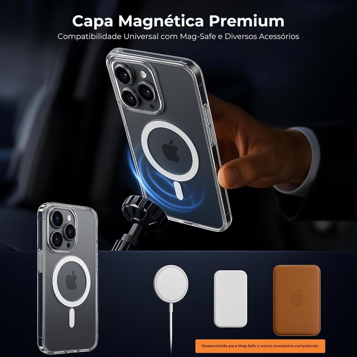 • Compatível com MagSafe: Carregamento rápido sem remover a capa. Use com carregadores, suportes e acessórios magnéticos.