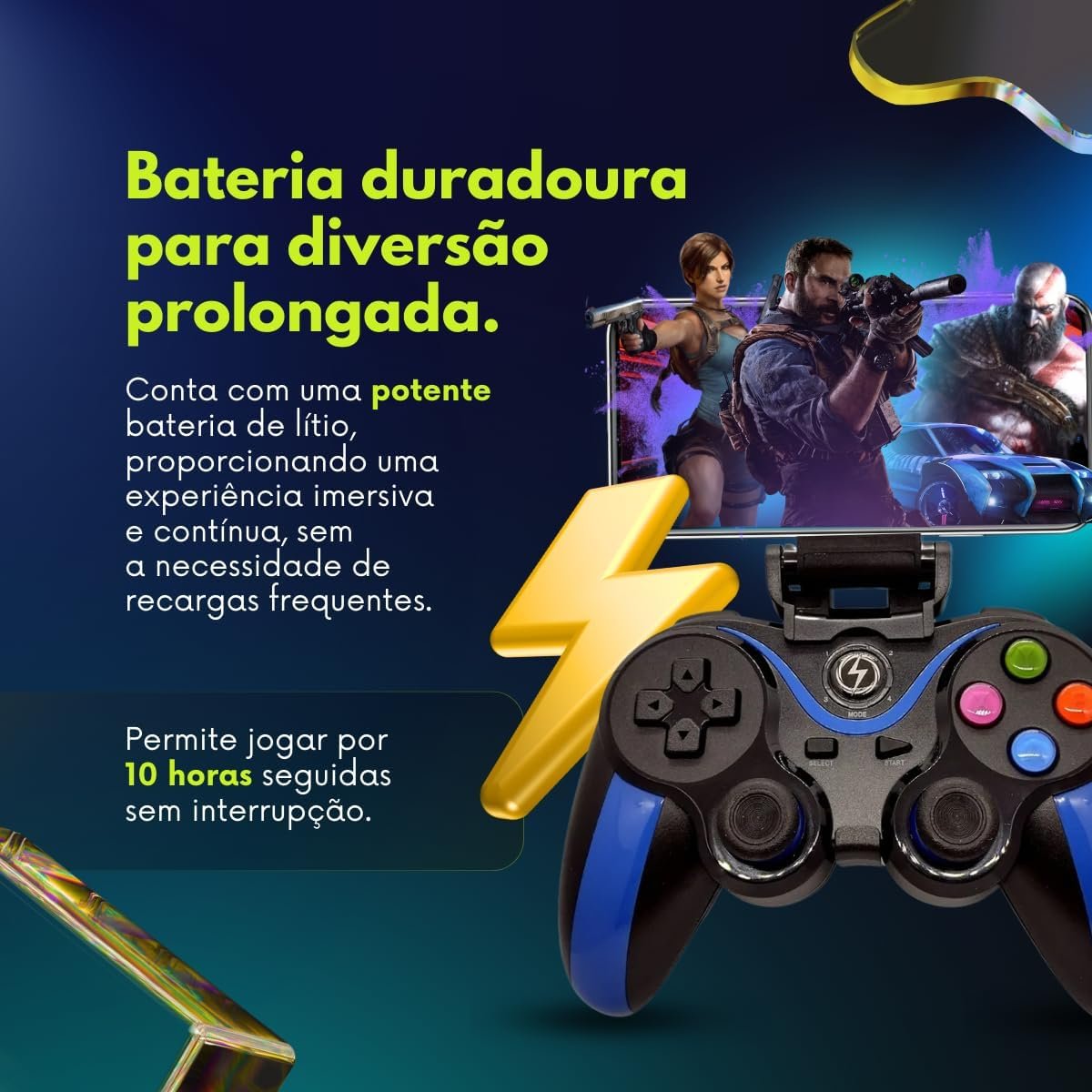 - Várias horas de jogo sem necessidade de recarga.