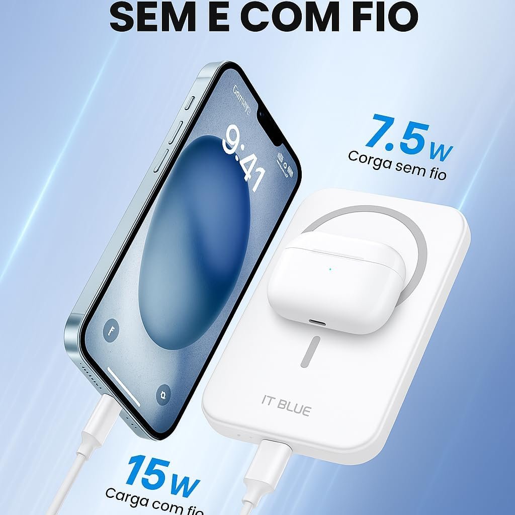 Em resumo, o Power Bank It-Blue MAX-0555 é a solução ideal para quem necessita de praticidade, eficiência e segurança ao carregar seus dispositivos móveis. Sua compatibilidade com MagSafe, design compacto e características de segurança fazem dele uma escolha inteligente para qualquer usuário.