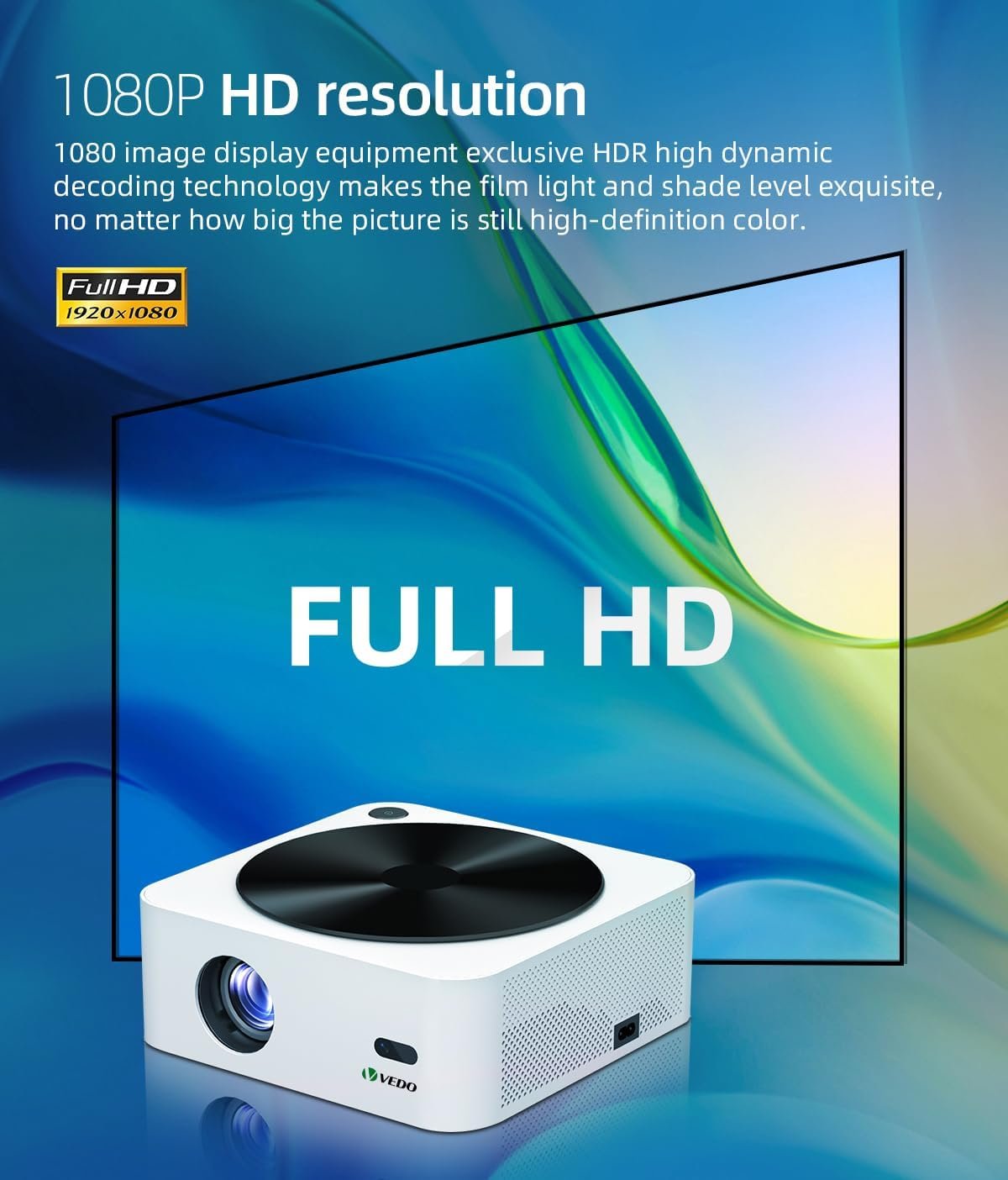 - Resolução Ultra-Alta: Com resolução nativa de 1920*1080, este projetor é compatível com 4K!