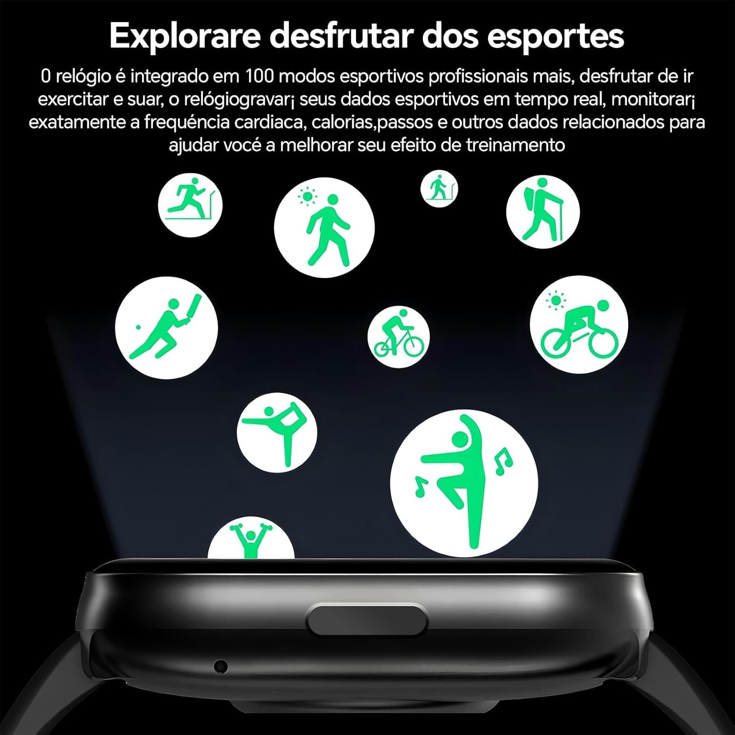 O smartwatch não é apenas um acessório elegante, mas também um companheiro de treinos. Ele vem com diferentes modos esportivos que serão úteis para quem deseja acompanhar suas atividades de forma eficiente.