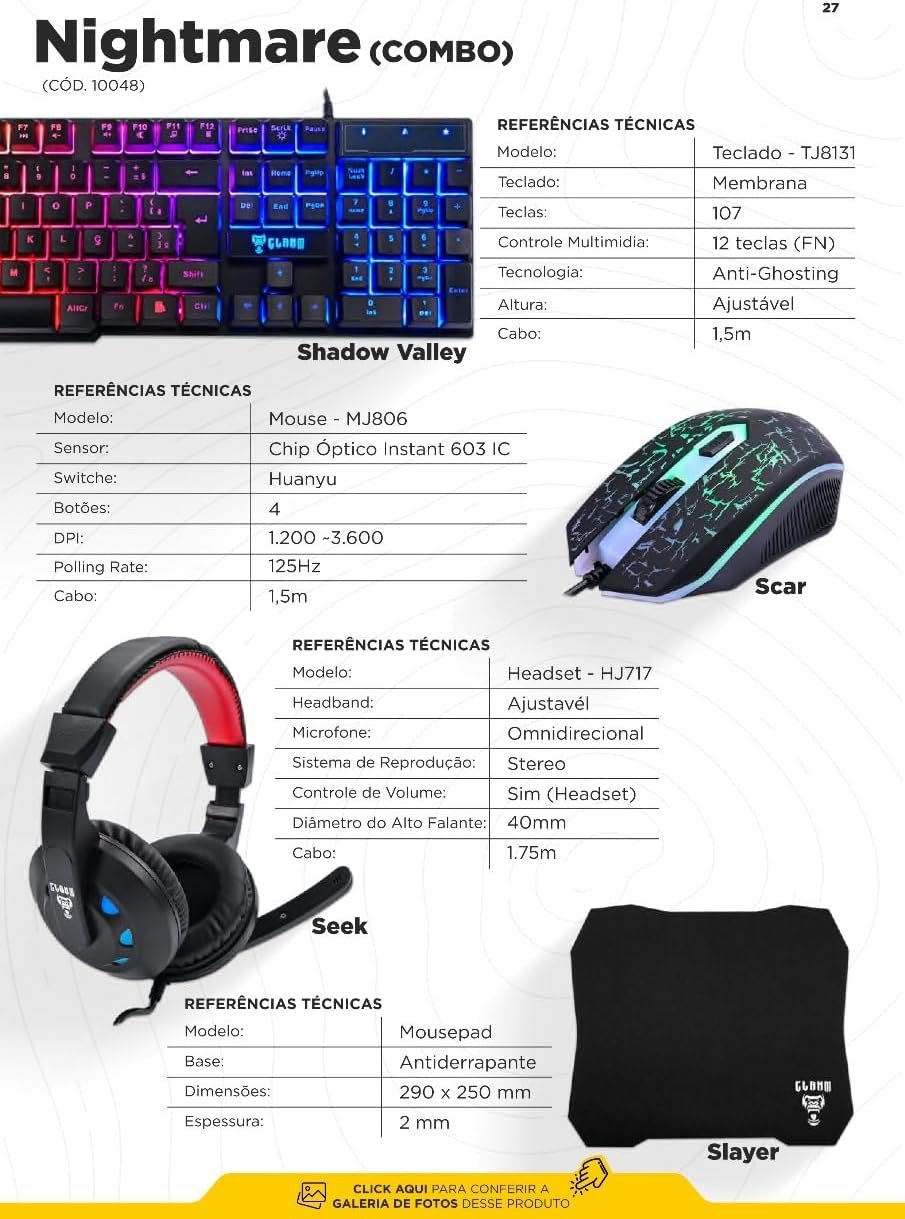 Com os itens inclusos, você estará completamente equipado para começar sua jornada gamer. O mouse gamer, por exemplo, é projetado para oferecer precisão e conforto durante longas horas de jogo, enquanto o teclado possui retroiluminação que traz um visual moderno e facilita a jogabilidade em ambientes pouco iluminados.
