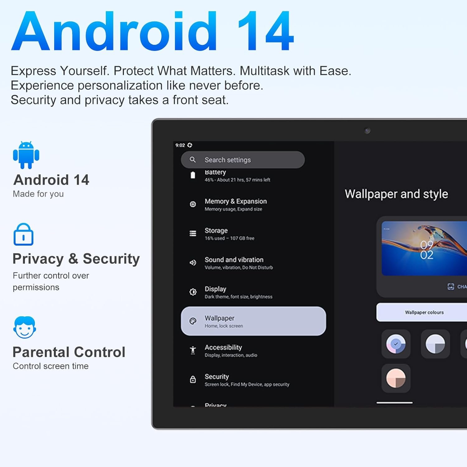 O desempenho deste tablet não decepciona. Ele vem equipado com o novo Android 14 e um robusto processador quad-core, que, juntamente com os 8 GB de RAM (sendo 6 GB expansíveis), garante uma operação rápida e suave.