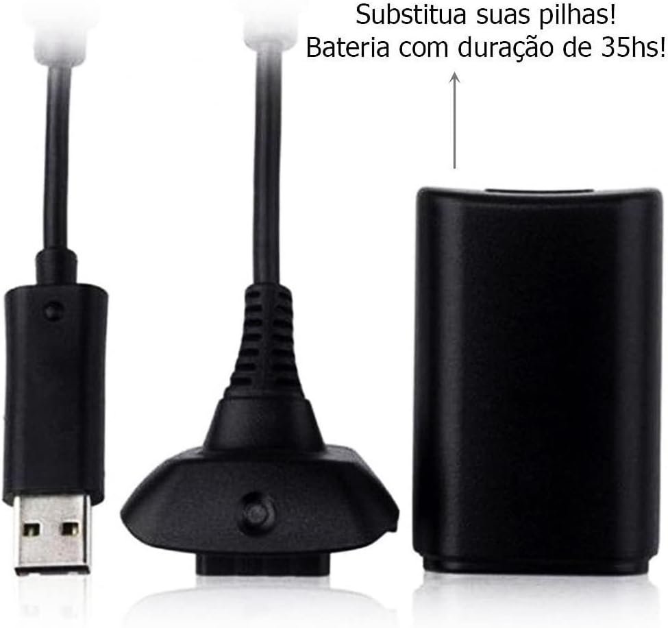 Bateria Para Controle Xbox 360 Com Cabo E Carregador Preto