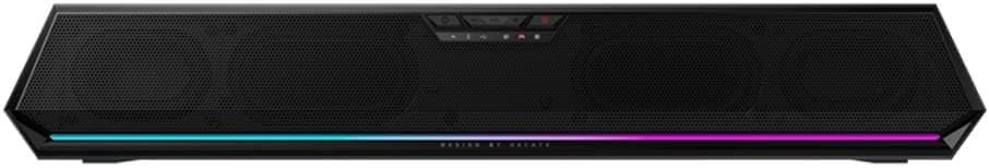 Para gamers que apreciam um ambiente imersivo e estilizado, a G1500 BAR também oferece efeitos de iluminação RGB personalizáveis. Através do software Hecate, você pode ajustar a iluminação da soundbar para se alinhar com seu setup e preferências pessoais.
