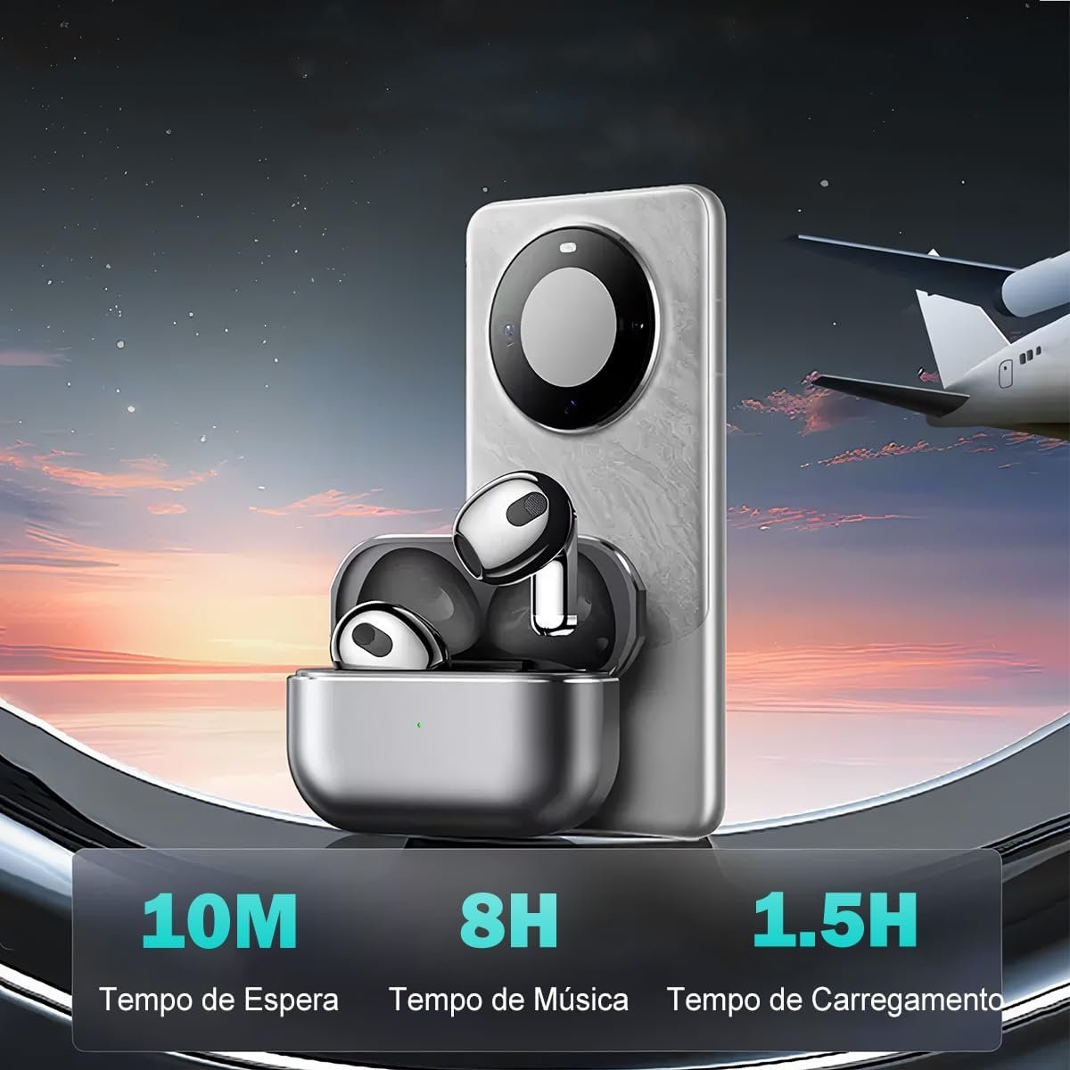 O tempo de carregamento é de apenas 1,5 horas para os fones e 2 horas para o estojo, permitindo que você volte a ouvir suas músicas rapidamente. Além disso, eles têm um sistema que desliga automaticamente após 5 minutos sem conexão, ajudando a economizar energia da bateria.
