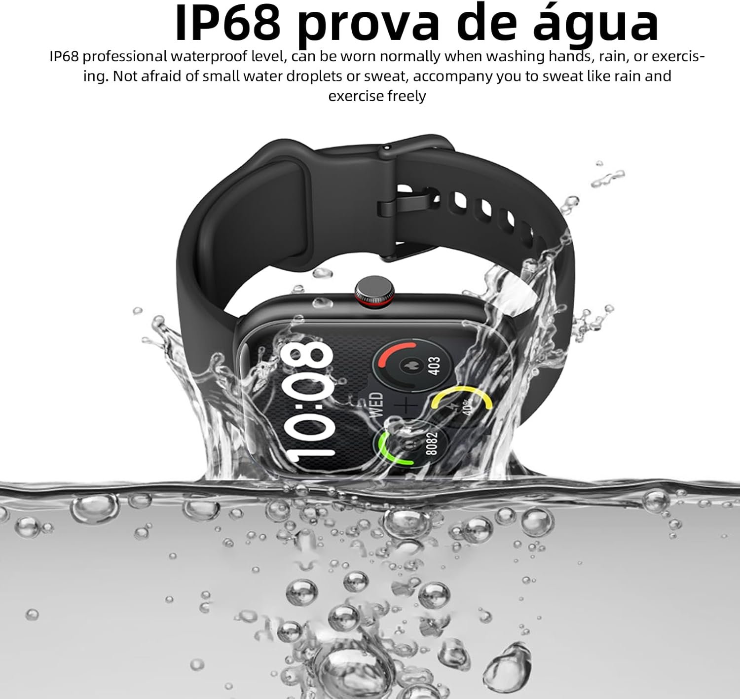 Preocupações com a água são comuns para quem usa dispositivos eletrônicos. O Bettdow SmartWatch conta com a classificação IP68, que garante: