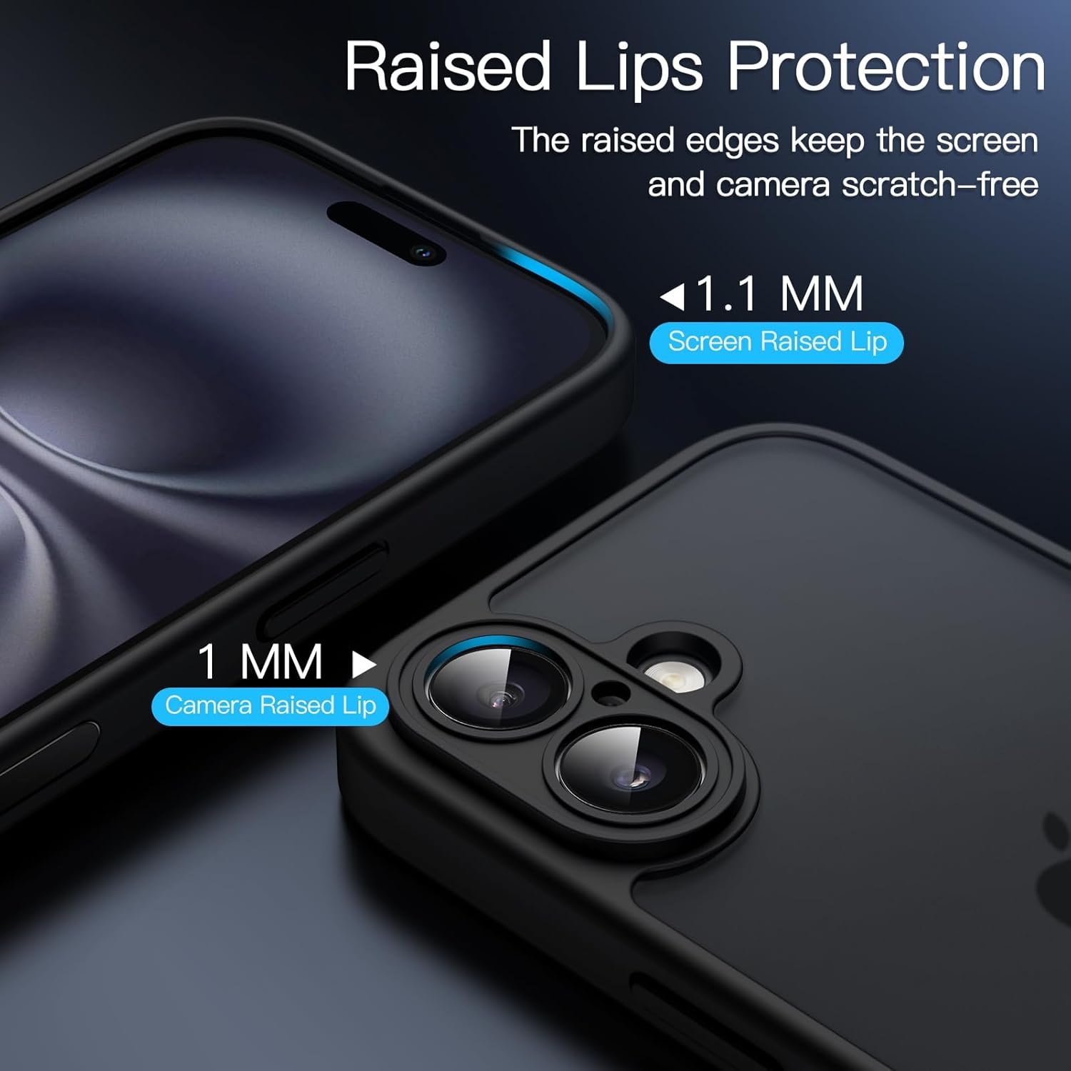 - Proteção anti-arranhões: Quando colocado em superfícies planas, o design elevado impede que a lente da câmera e a tela entrem em contato direto com a superfície.