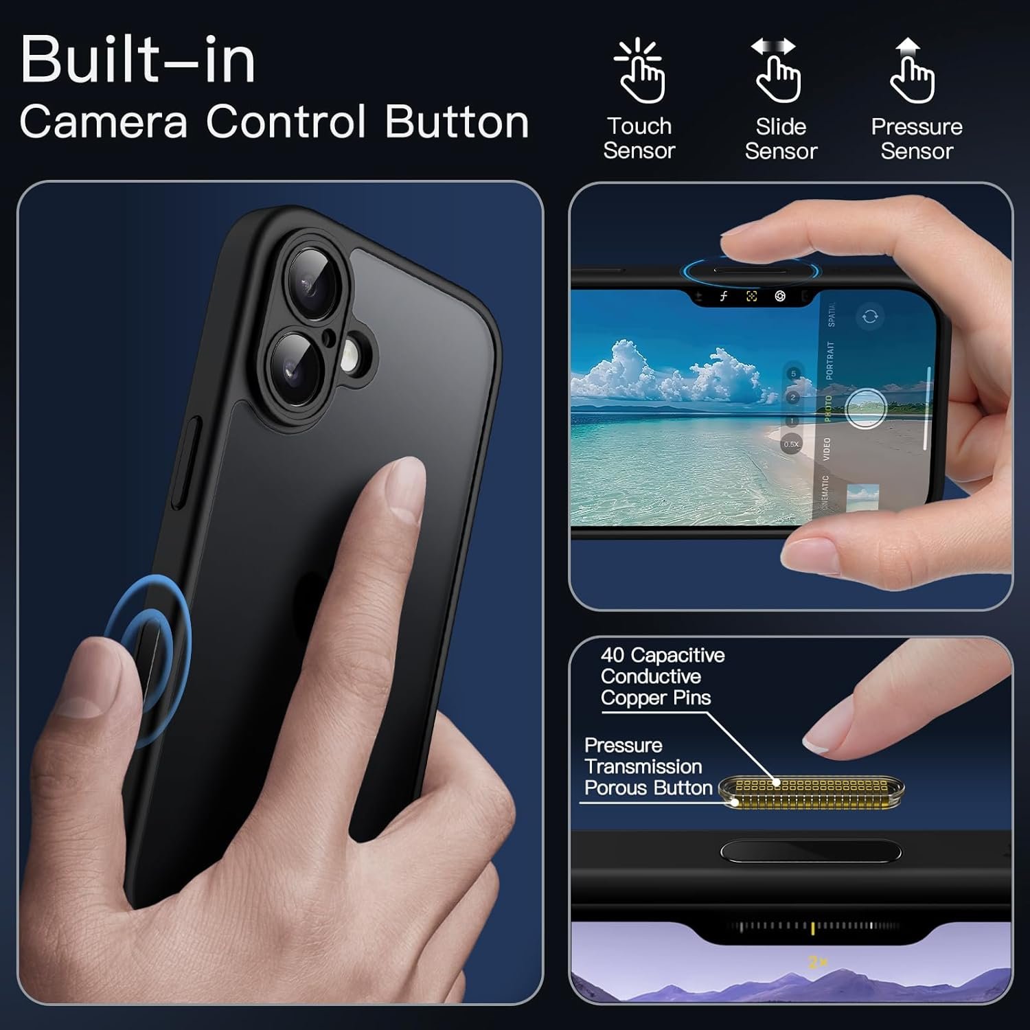 Um dos recursos mais inovadores dessa capa é o botão de captura de câmera integrado. Isso significa que: