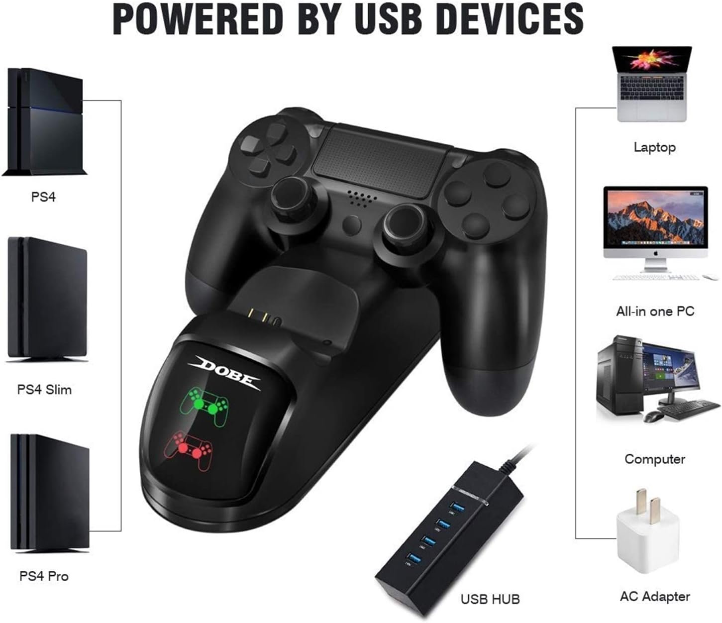 - 1 Carregador Duplo para Controles PS4