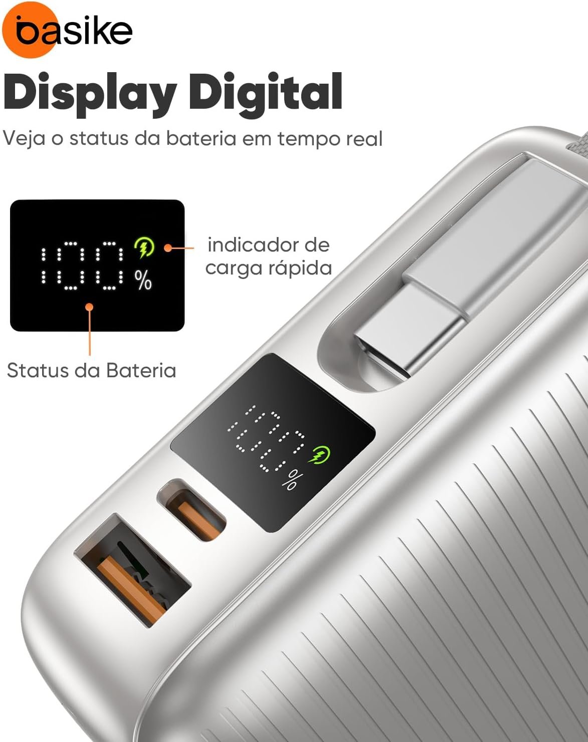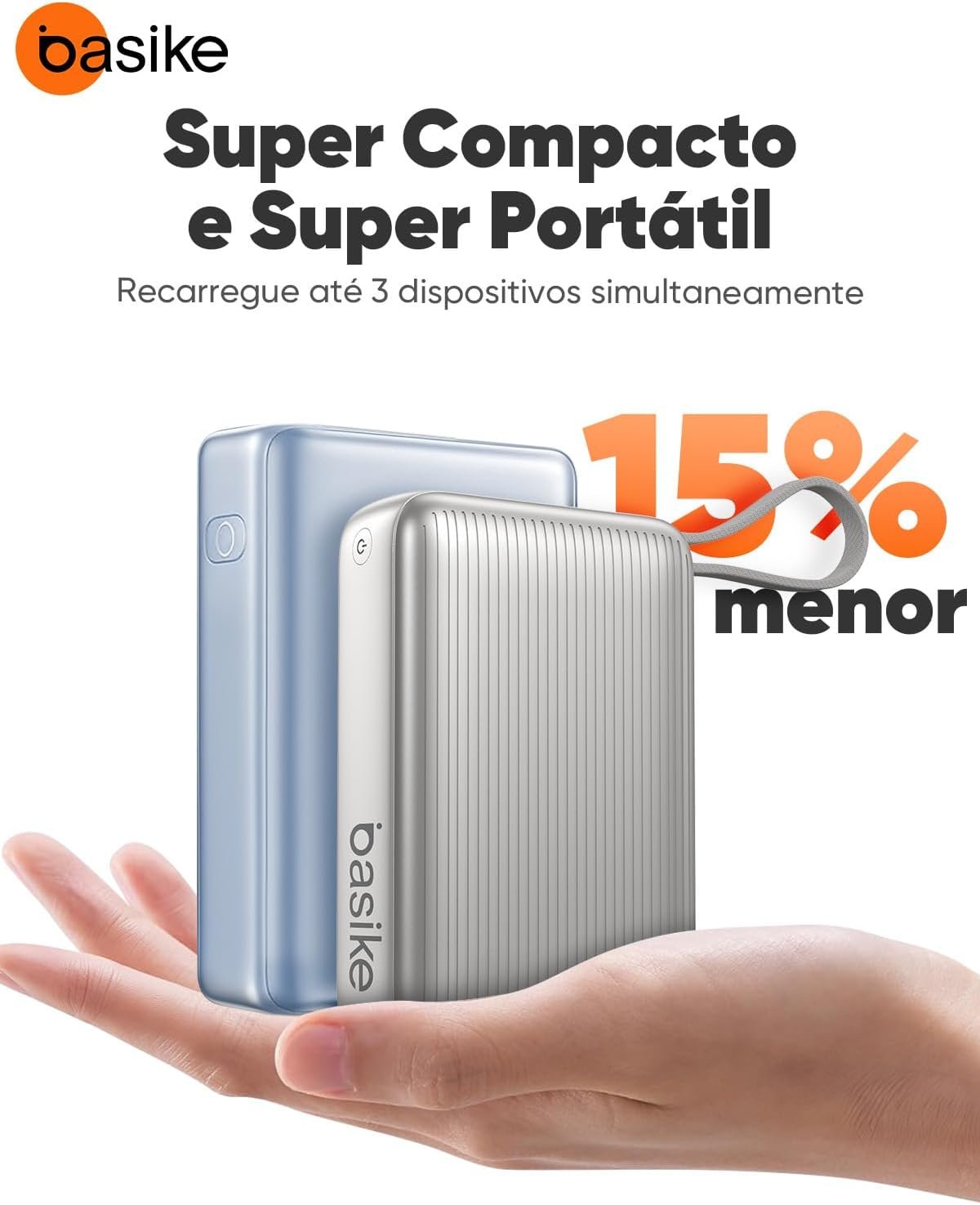 A principal diferença é a capacidade e a tecnologia de carregamento. O modelo Basike é compacto para sua capacidade de 20.000 mAh e vem equipado com cabos USB-C e USB-A integrados.