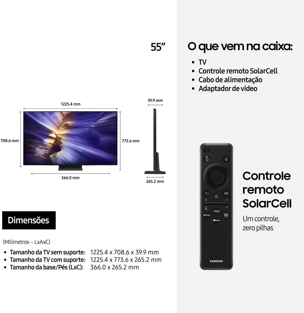 A Samsung Vision AI TV 55" OLED 4K S90F 2025 é mais do que uma televisão; é um investimento na qualidade do seu entretenimento. Com uma combinação de design elegante, tecnologia de ponta, segurança robusta e personalização através da inteligência artificial, é difícil não se apaixonar por esse produto.