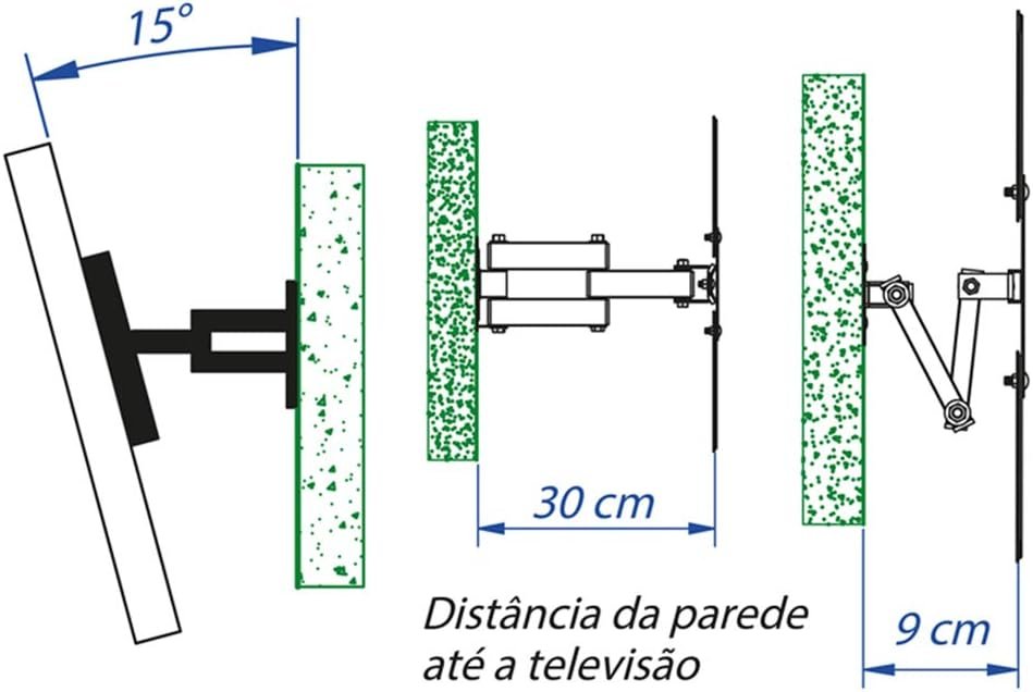 - Distância máxima da parede de 30 cm e mínima de 10 cm, oferecendo flexibilidade de posicionamento.
